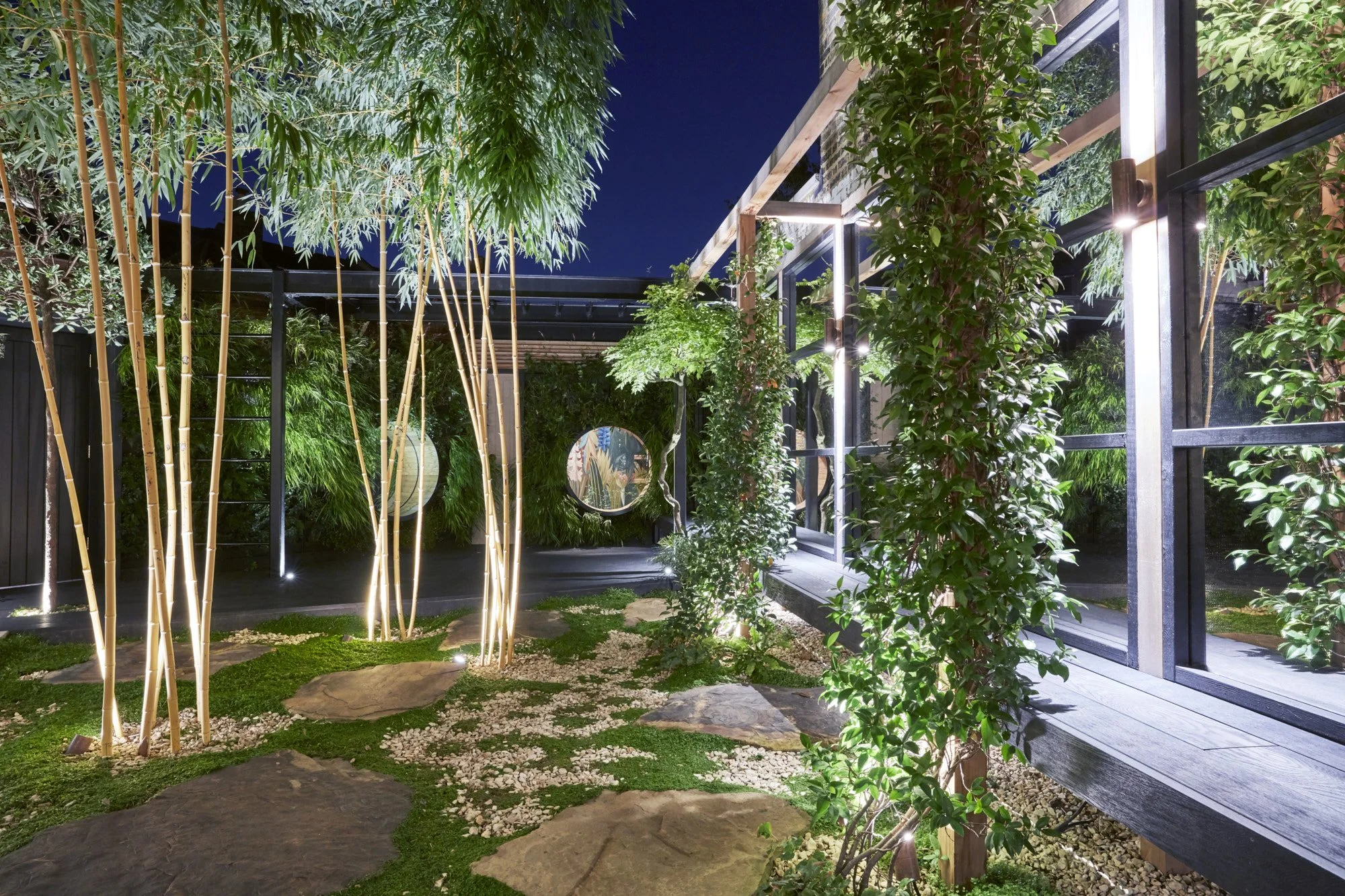 Gardens, courtyards, public areas, and playgrounds. Ensuring continuity between indoor and outdoor spaces, with natural materials and design harmony.